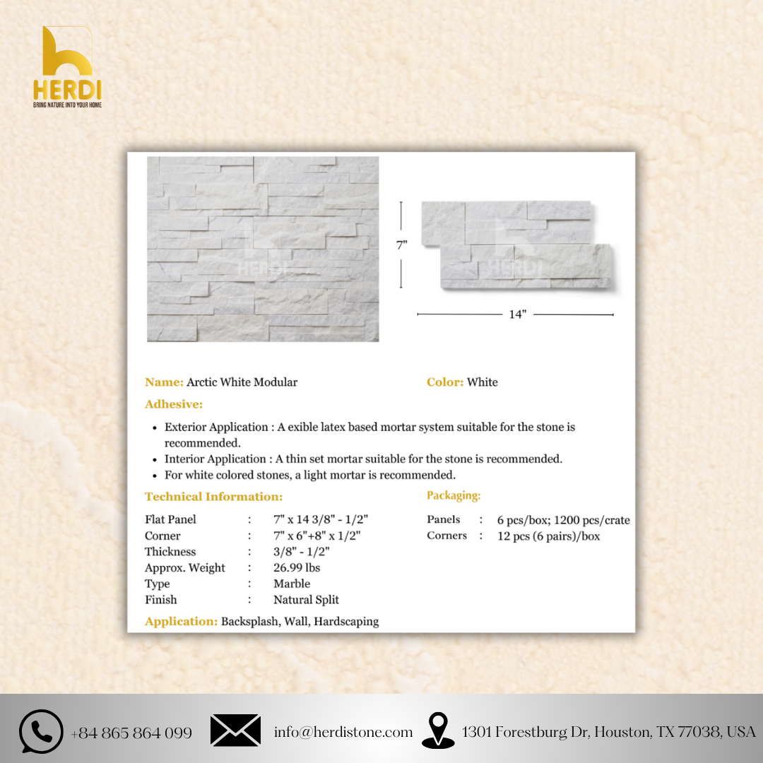Arctic White Modular Marble, a testament to timeless elegance, captivates with its creamy white hue and delicate veins that meander across its surface. Whether adorning the walls of a grand living room, lending serenity to a cozy bedroom retreat, or infusing an office sanctuary with quiet grandeur, its versatility knows no bounds. With Arctic White Modular Marble, every corner becomes a sanctuary of splendor, where elegance and grace intertwine effortlessly.